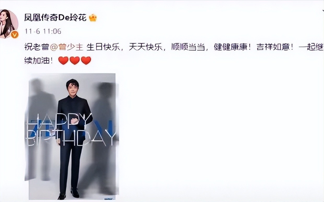 11月6日,正值曾毅生日当天,玲花特意选择在晚上11点06分发布微博祝福。